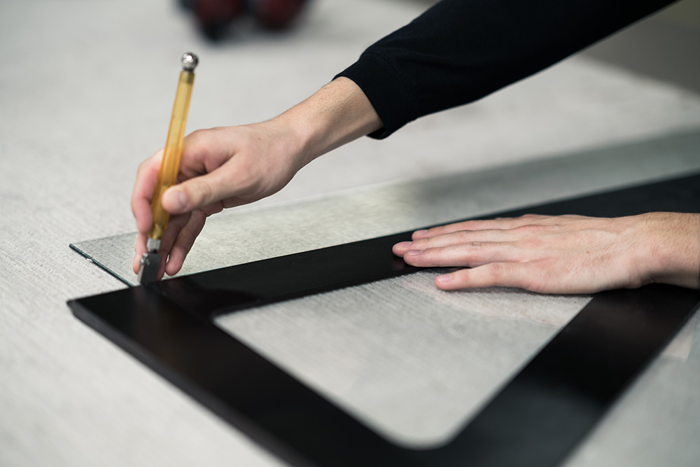 The techniques we use today are that we cut the glass with a very modern cutting plant, and then process the glass further through grinding, milling, drilling, hardening and lamination. We also have a large part of the glassware market for shops, hotels, malls and exhibitions, and for this we also have the technology to glue and mount displays.